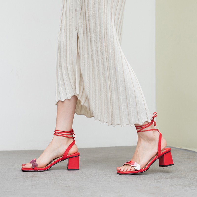 2019新款涼鞋女夏粗跟高跟鞋網(wǎng)紅仙女風(fēng)超火愛心少女一字綁帶鞋子